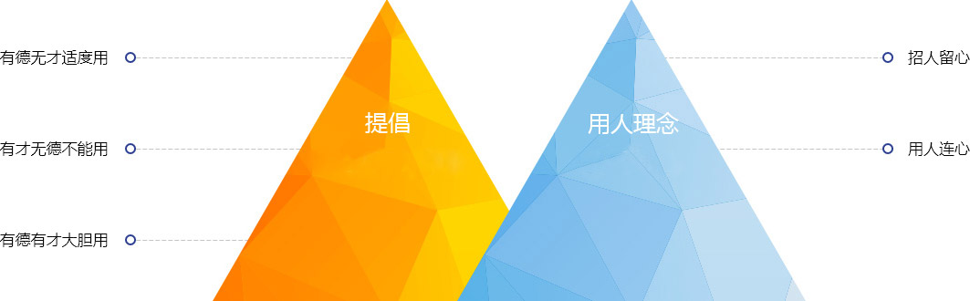 用人注重对企业价值观的认同,心灵的契合。精心设计员工的职业生涯,以提升员工的人生价值为旨归,